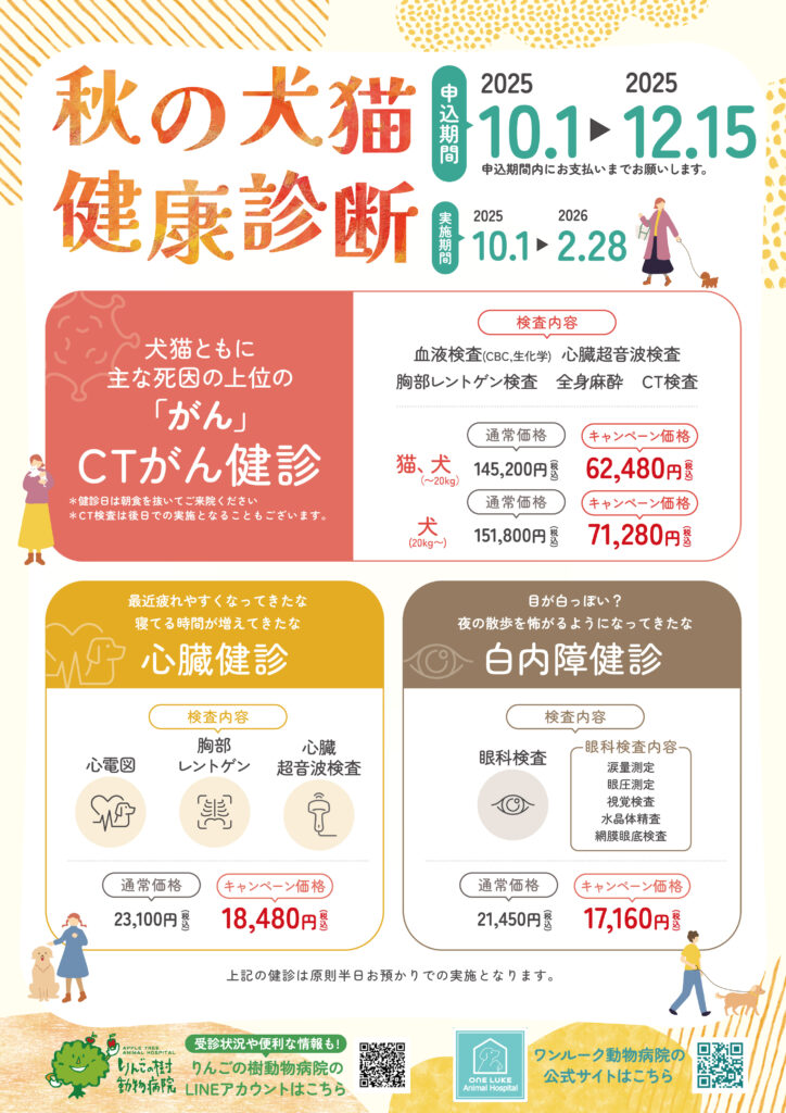 ワンちゃん、猫ちゃんのための『秋の健康診断』キャンペーンを実施します。